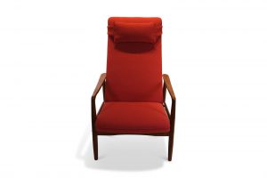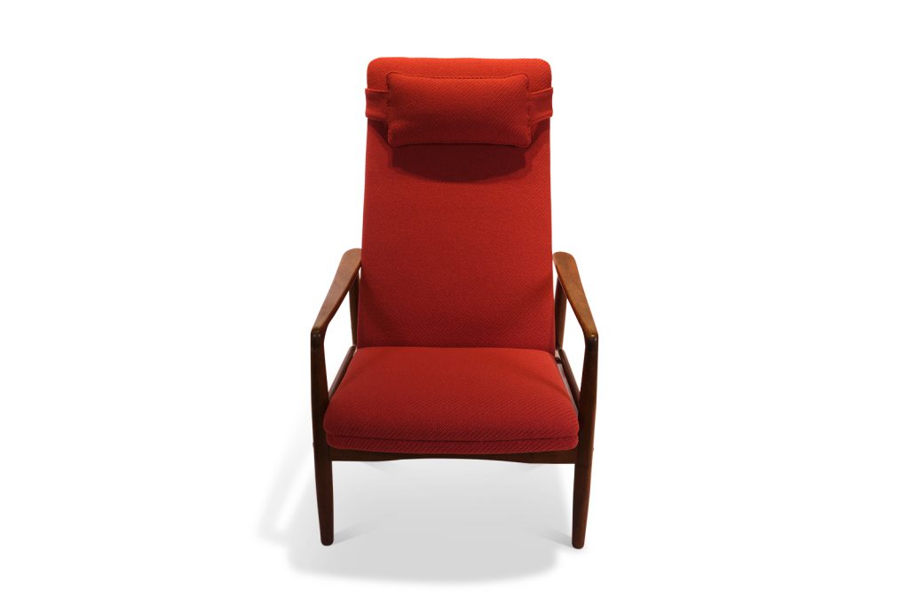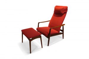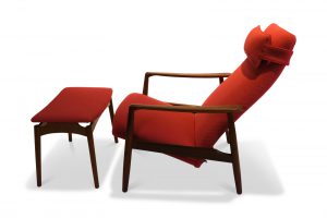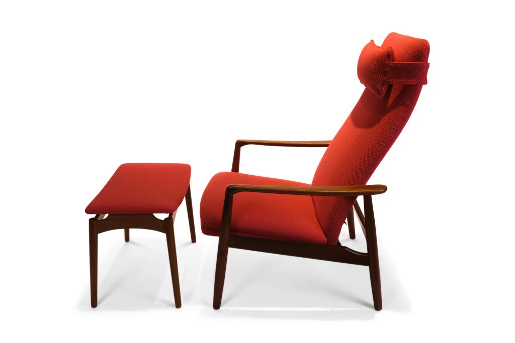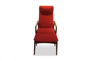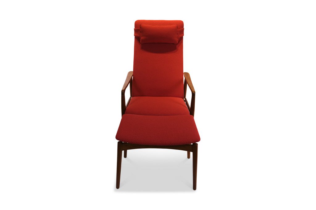 Butaca reclinable en palosanto con reposapies diseñada por Søren Ladefoged, tapicería Kvadrat.