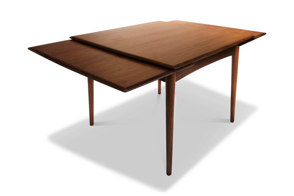 Mesa cuadrada de comedor en teca. 2 extensiones de 48 cm.